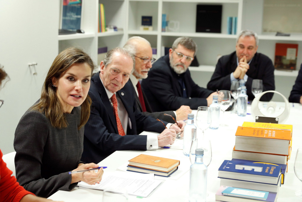 Doña Letizia interviene en la reunión del Consejo Asesor de la Fundéu BBVA celebrada el 10 de enero de 2018.