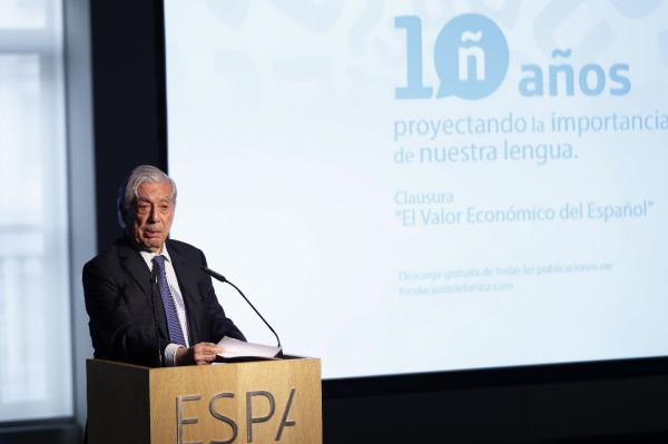 «No nos durmamos en los laureles, lo que le debemos a la lengua española es impagable. Lo que nos toca ahora es cuidarla y defenderla», ha dicho el premio Nobel durante la presentación de este proyecto financiado por la Fundación Telefónica que ha cumplido diez años (2006-2016) tras la publicación de los 14 tomos que conforman este trabajo titulado Valor económico del español.