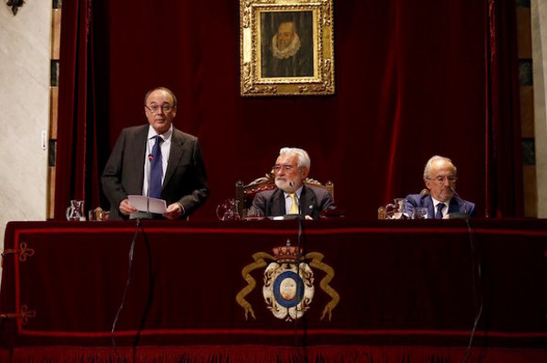 El salón de actos de la Academia acoge cada año esta celebración, que en esta ocasión estuvo presidida por el director de la RAE y vicepresidente de la Fundación, Darío Villanueva; el presidente de la Fundación y gobernador del Banco de España, Luis María Linde, y el secretario de la institución, Santiago Muñoz Machado.