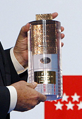 ESPAÑA-PREMIOS PERIODISMO:MD140. MADRID. 02/07/08.- El editor de La Vanguardia, Javier Godó (i), recoge el premio “Miguel Moya” de manos de la presidenta de la Comunidad de Madrid, Esperanza Aguirre, durante la gala de entrega de los Premios de Periodismo 2007 de la Asociación de la Prensa de Madrid (APM). EFE/Manuel H. de León (Newscom TagID: efespfour469989) [Photo via Newscom]