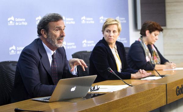 La consejera de Desarrollo Económico de La Rioja, Leonor González Menorca; el director de la Fundación del Español Urgente (Fundéu BBVA), Joaquín Müller-Thyssen, y la coordinadora de la Fundación San Millán, Almudena Martínez, han presentado hoy en Logroño, en una rueda informativa, este seminario.