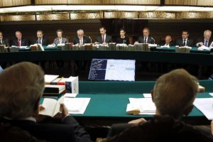 Don Felipe y doña Letizia han presidido esta tarde la reunión semanal de la junta de la RAE que la Academia celebra todos los jueves, una sesión de trabajo a la que han asistido 37 académicos y en la que el director, Darío Villanueva, ha presentado a los reyes un informe sobre la situación y las actividades de la institución.