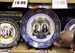 Objetos conmemorativos y de recuerdo de la boda real en una tienda de Londres (marzo, 2011)