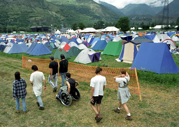 Es frecuente leer en los medios expresiones como «El camping del festival de música Arenal Sound abre sus puertas», «El detenido fue sorprendido en el interior de un vehículo estacionado en un camping» o «El camping de indignados se desborda».