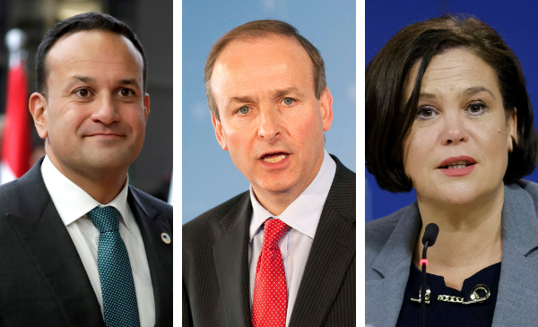 Leo Varadkar, del partido Fine Gael; Micheál Martin, del Fianna Fáil, y Mary Lou McDonald, del Sinn Féin, son los principales candidatos en las elecciones generales que se celebran mañana en Irlanda.