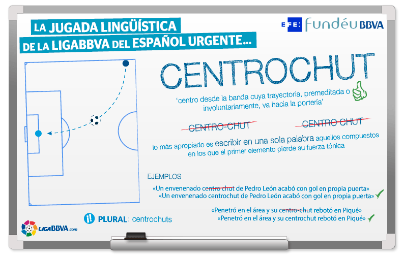 Así pues, dado que en la actualidad es más habitual pronunciar /zentrochút/ que /zéntro chút/, en los ejemplos anteriores habría resultado preferible escribir «José Fuentes fue casi un espectador, sólo tuvo que intervenir en un centrochut», «Penetró en el área y su centrochut rebotó en Piqué» o «El centrochut de Mamadou fue directamente a las manos de Andrés».