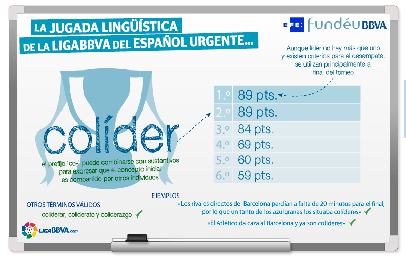 En los medios informativos es habitual encontrar frases como «Griezmann hace colíder al Atlético» o «Uno de los colíderes, Xavier Guzmán, opina que esta situación cambiante en la clasificación es buena para el golf», ambas válidas.