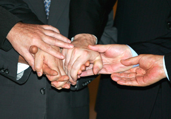 Simbólico gesto previo a unas negociaciones, Pekín (China, 2005)
