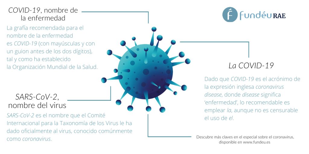 Con respecto al género del artículo, es posible emplear el femenino o el masculino. Puesto que la sigla COVID está formada a partir de coronavirus disease, ‘enfermedad del coronavirus’, el género se puede tomar del sustantivo femenino enfermedad, al igual que sucede con otras siglas: se dice el SIDA porque es el síndrome de inmunodeficiencia adquirida o la ELA por la esclerosis lateral amiotrófica. En cambio, el uso del masculino se ha asentado «por influjo del género de coronavirus y de otras enfermedades víricas (el zika, el ébola), que toman el nombre del virus que las causa», como indica la RAE en su cuenta de Twitter.