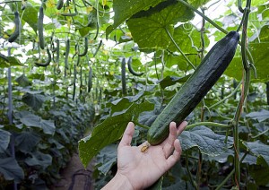 Plantación de pepinos en un invernadero del poniente almeriense (España, 27/5/2011)