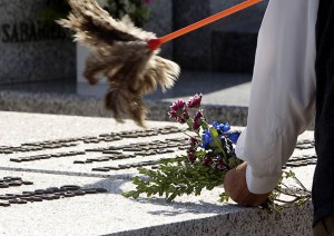 Adecentan la tumba de un cementerio en la víspera de la festividad de Todos los Santos (Madrid, 31/10/2011)