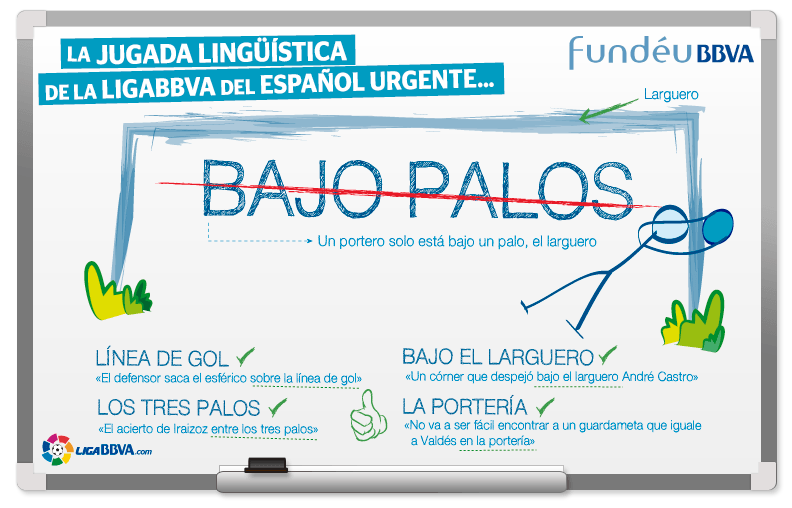 Pese a hallarse muy extendida, la expresión bajo palos, en plural, resulta imprecisa, ya que el portero únicamente se encuentra debajo de un palo, el larguero.