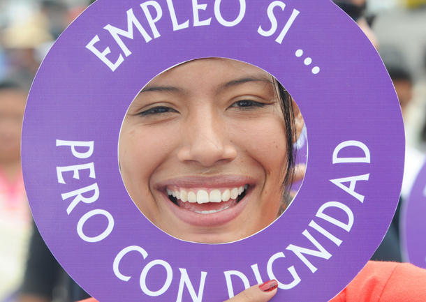 Manifestante en una marcha para celebrar el Día Internacional de la Mujer Trabajadora, Managua (Nicaragua, 2011)