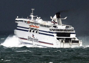 Un ferry sale del puerto de Santander, en medio de un fuerte oleaje (Santander, España, 19/4/2012)