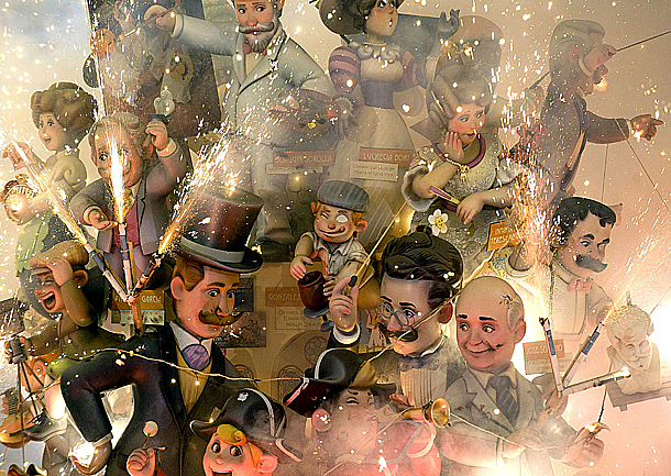 Unos ninots son devorados por las llamas durante la Cremá de la falla infantil de la plaza del ayuntamiento (2009)