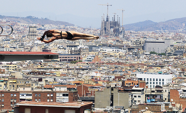 GRA265. BARCELONA, 15/07/2013.- Una saltadora sin identificar se entrena hoy en la Piscina Municipal de Montjuic, en Barcelona, una de las sedes en las que a partir del próximo día 19 se celebrará el Mundial de natación Barcelona 2013. EFE/Andreu Dalmau.