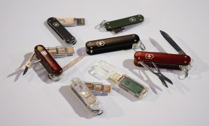 EEUU TECNOLOGÍA:LAS35.- LAS VEGAS (NV, EEUU), 12/01/2012.- Vista de unas navajas Victorinox Swiss Army con memoria USB integrada hoy, jueves 12 de enero de 2012, en la Feria Consumers Electronics Show, en Las Vegas, Nevada (EEUU). La feria anual CES es un lugar donde los creadores, publicistas y usuarios de tecnología se reúnen para dar a conocer las innovaciones que se aproximan cada año en la materia. EFE/DAN GLUSKOTER