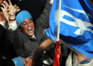 Simpatizantes del Partido Popular celebran la victoria electoral junto a la sede del partido, Madrid (España, 2011)
