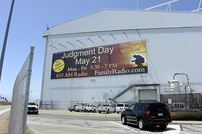 Un grupo evangélico de Oakland exhibe un cartel que declara la llegada del fin del mundo (