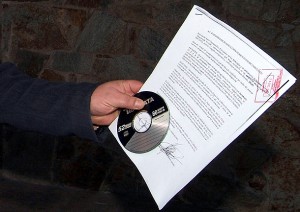 Presentación ante el juzgado de Corcubión de un CD relacionado con la catástrofe del «Prestige» (Galicia, 14/12/2005).