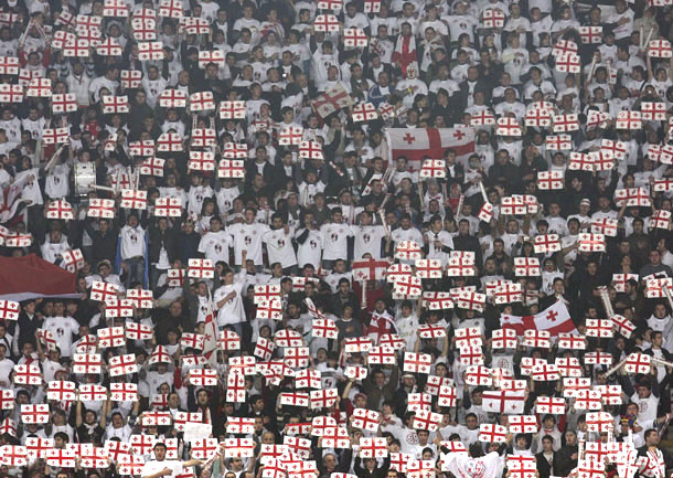 Aficionados de la selección de fútbol de Georgia durante un partido clasificatorio para la Eurocopa 2012, Tiflis (Georgia, 2011)