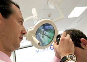 El especialista en trasplante capilar, José María Ricard, observa la evolución del trasplante de pelo hecho a un paciente (Valencia,13/4/2012)