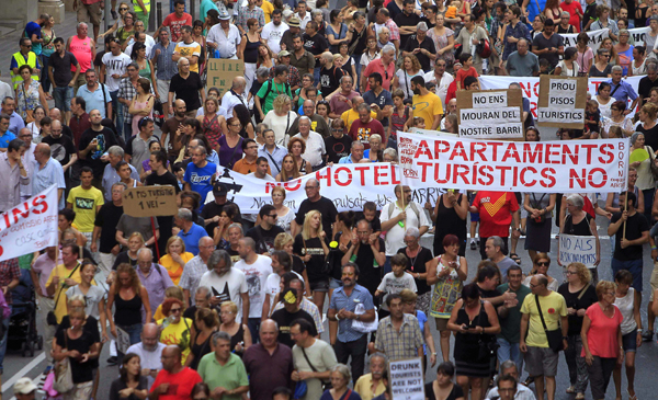 En la prensa se pueden encontrar frases como «La turistificación que incide de manera depredadora en los precios de la vivienda y en la configuración comercial» o «Numerosas organizaciones y colectivos estuvieron presentes en la manifestación contra la excesiva turistificación de Barcelona».